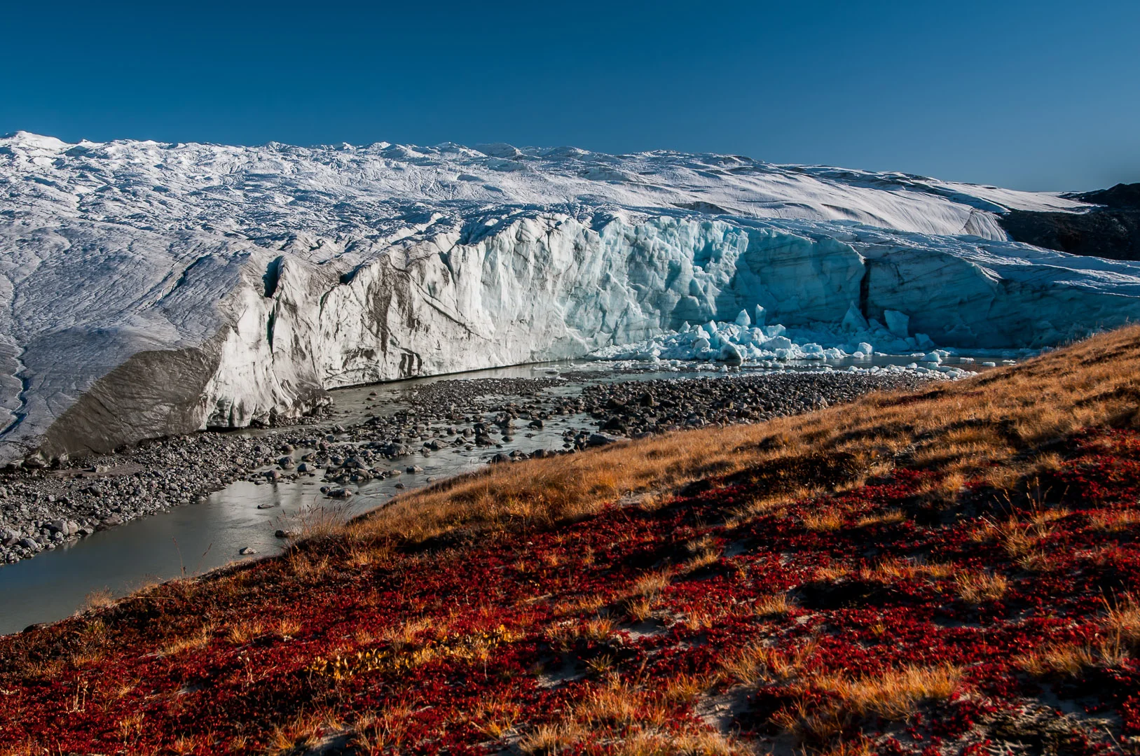 Jak trek ubíhal, začínalo postupně krátké grónské léto přecházet do ještě kratšího podzimu. My jsme navíc mířili od poměrně vlídného pobřeží směrem k nehostinnému ledovci. Noci se stávaly čím dál studenějšími, vítr čím dál ostřejším, k ránu teploty padaly pod nulu a udržet foťák ve zkřehlých prstech a udělat ostrý záběr třesoucíma se rukama bylo čím dál složitější. Jak se nám trek krátil, začínali jsme se už opravdu těšit do civilizace, alespoň na nějaké jiné jídlo, než byl kuskus s houbama a bujonem.