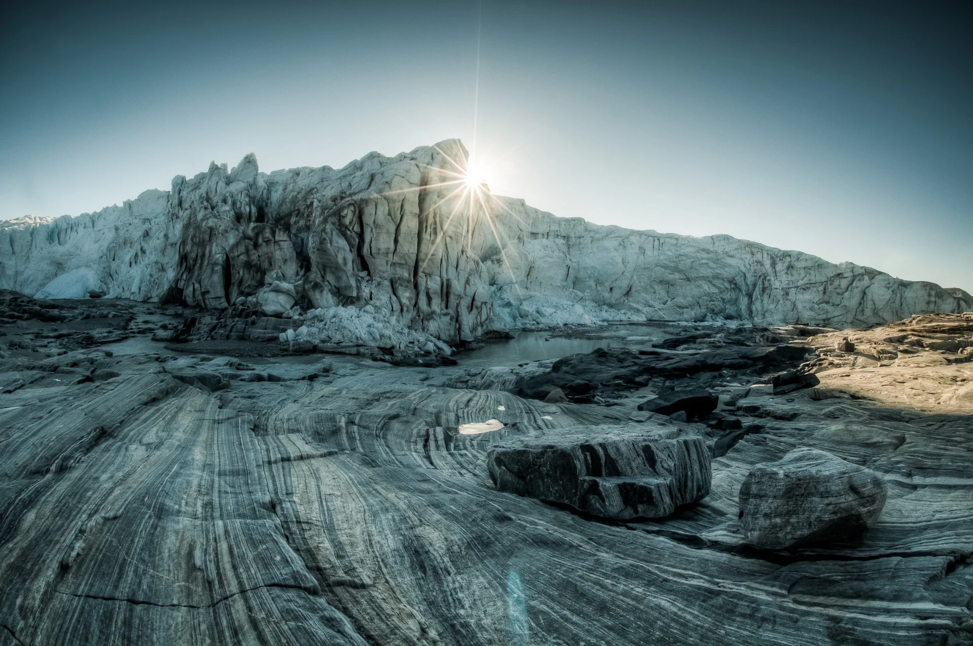 Možná to vypadá jako vobyčejná fotka z Grónska. Není. Alespoň pro mě :-) vstával jsem za brutálního mrazu, vylízt ze stanu byl stejnej pocit jako ta studená sprcha po sauně. Rychle se oblíct a hurá pod ledovec. Postavil jsem foťák na stativ, záběr jsem měl "vymyšlený" de facto už od večera. Jak se ale ráno ukázalo, tohle bylo zjevně nejzastíněnější místo celý severní polokoule, takže za víc jak dvě hodiny bylo světlo všude a tady ne :-) Pak už se jen pamatuju že mě totálně zmrzlýmu Džorč pomáhá ke stanu a do spacáku a čekám na kafe, co mi udělal abych rozmrznul. Úžasný!